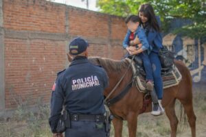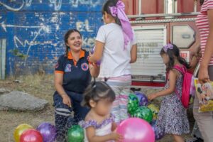 Las niñas y niños convivieron con “Harry” mascota del Cuerpo de Bomberos, quienes mostraron a los menores los vehículos y actividades que realizan, también tuvieron la oportunidad de montar los caballos de la Policía Municipal e interactuar con los caninos del grupo K9.