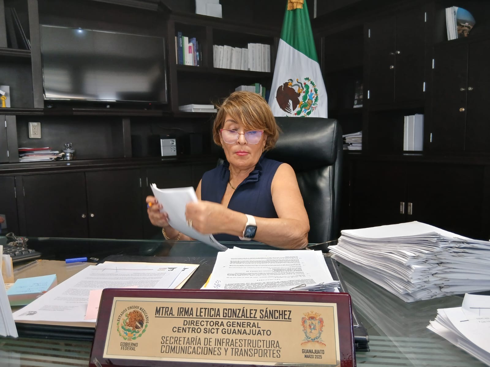GUANAJUATO, Gto. – Con el objetivo de acelerar el cumplimiento de metas y garantizar resultados oportunos para la ciudadanía, la directora general del Centro Guanajuato de la Secretaría de Infraestructura Comunicaciones y Transportes(SICT), Mtra. Irma Leticia González Sánchez mantiene una dinámica de trabajo de jornada extendida, supervisando personalmente los avances técnicos y administrativos desde su oficina hasta altas horas de la noche.