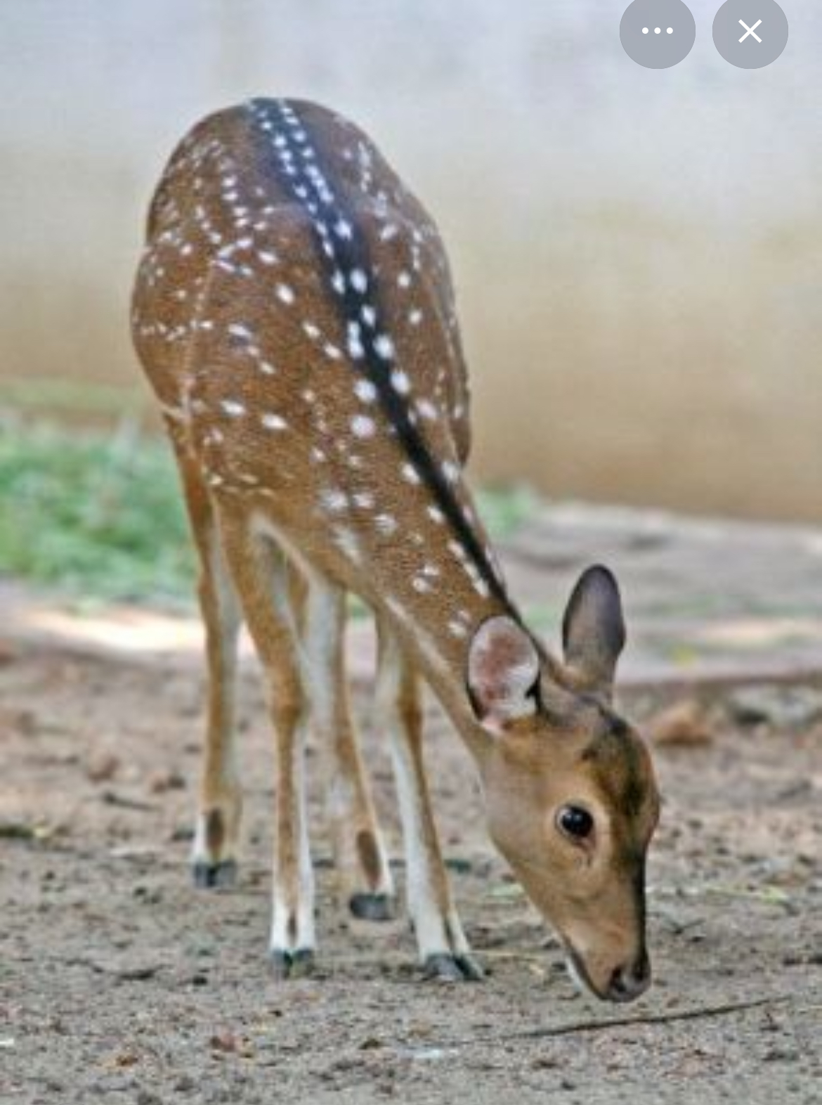 El venado Axis tiene el pelo de un castaño rojizo en verano y castaño grisáceo en invierno. Sólo los machos tienen astas, que son ramificadas y que mudan al terminar el invierno.